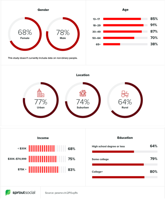 Youtube usage among demographics, by SproutSocial 2020